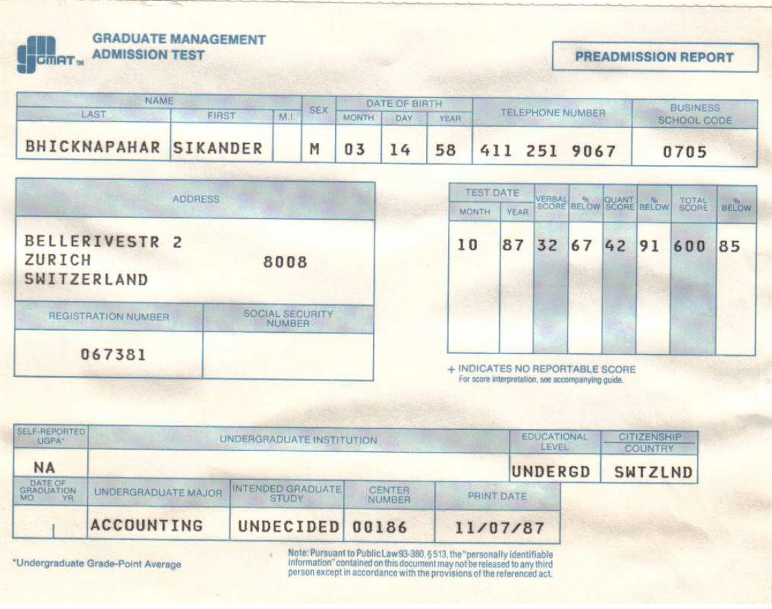 GMAT 600 (d.h. obere 15% der damaligen Prüfung)